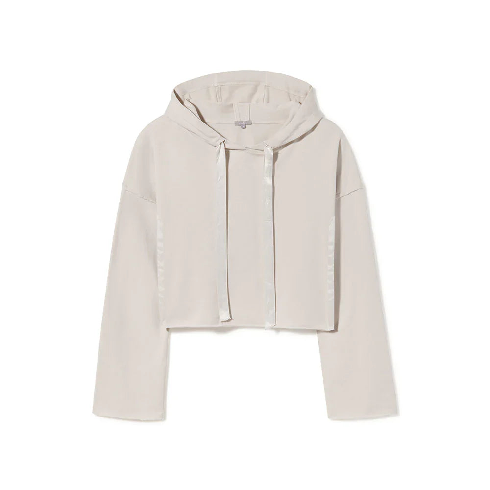 - This French Terry Crop Sweatshirt Features A Soft Hood And Beautiful Satin Insets