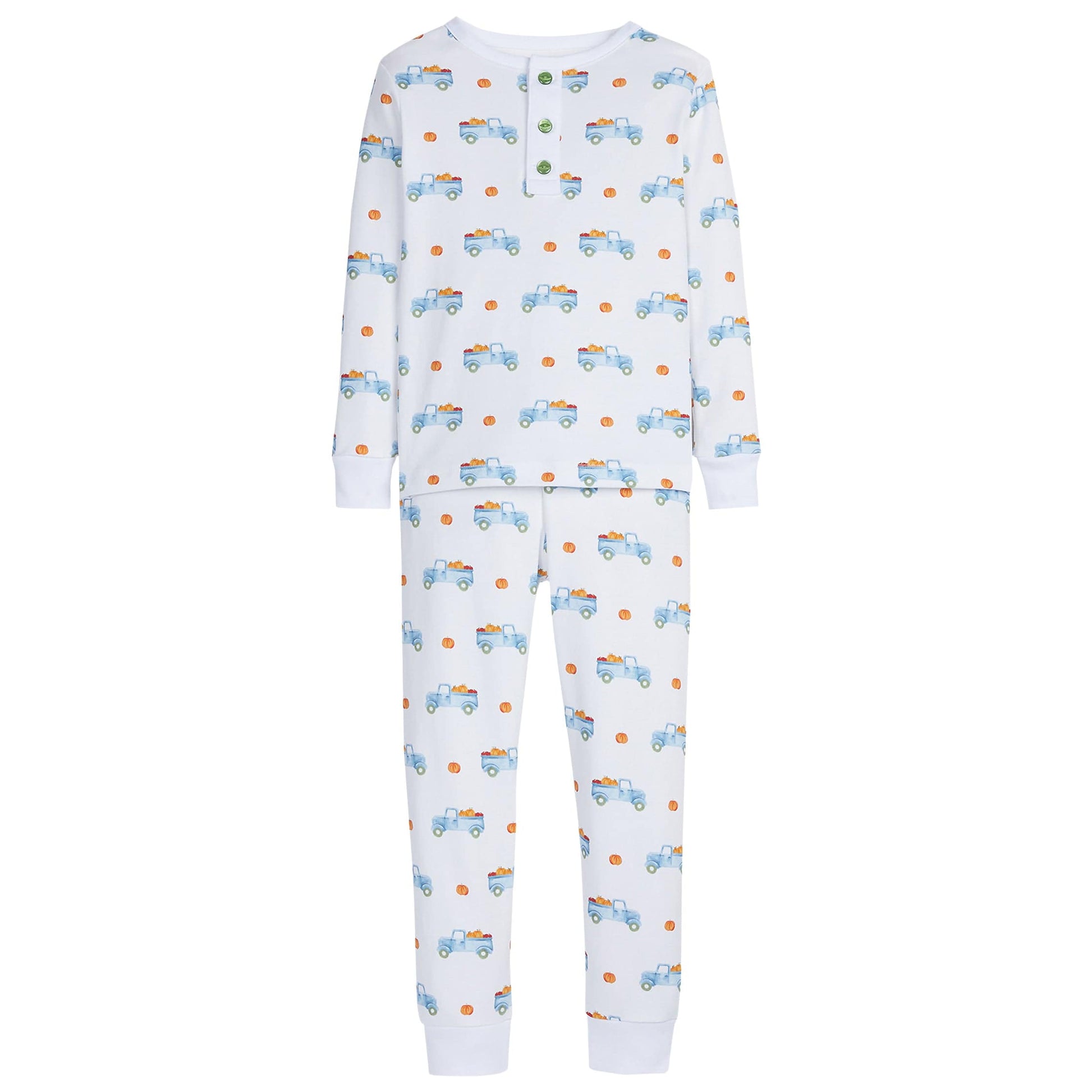 Snuggle up this fall in our Printed Jammies - Harvest Truck. This two piece jammie set features fall print with pumpkins and classic pickup trucks. Your little boy will love this design, and baby brother can coordinate in our matching Printed Playsuit - Harvest Truck.
