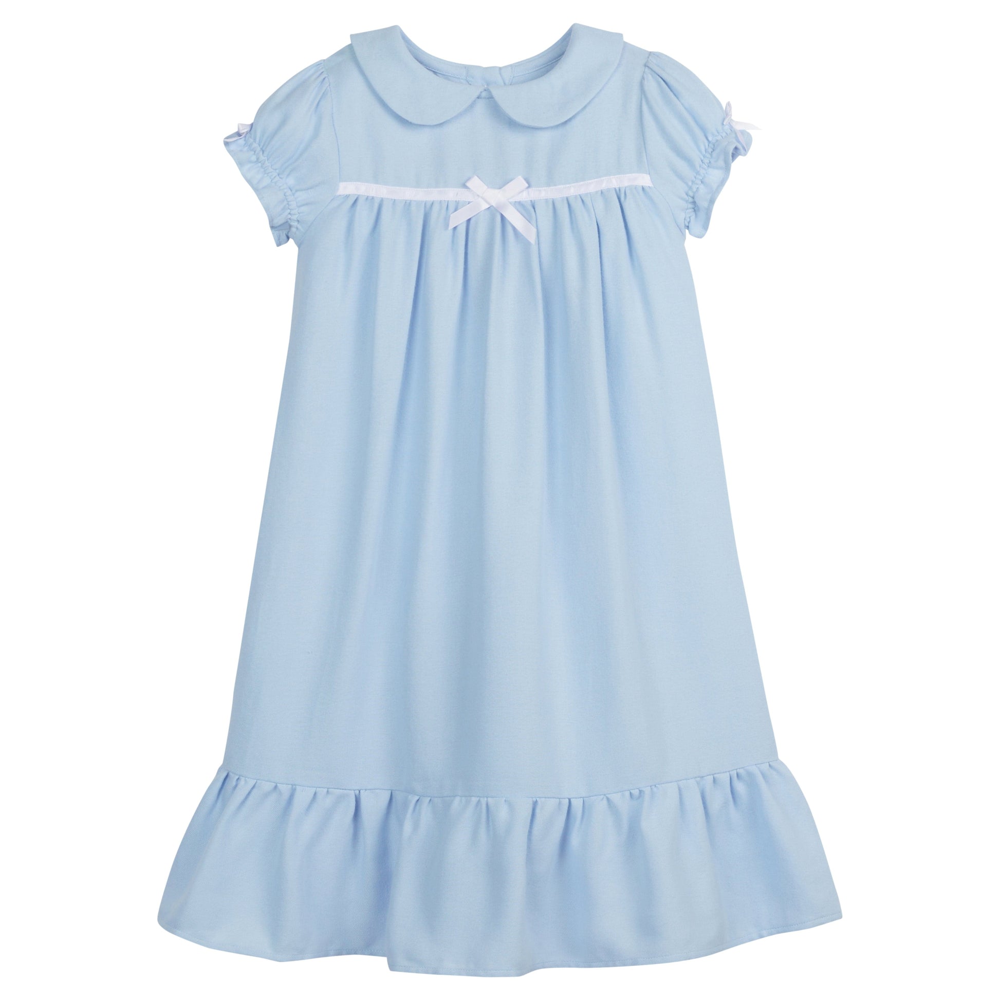 Little English Classic Nightgowns are back in our classic light blue! With a peter pan collar, short sleeves that have elastic at the arm band and a fixed ribbon bow across the chest, this spring nightgown is sure to be a favorite this season! It runs from 18m - 10, making it perfect for sibling matching & brother can coordinate in our Classic Short Sleeve Pajama Set - Light Blue.