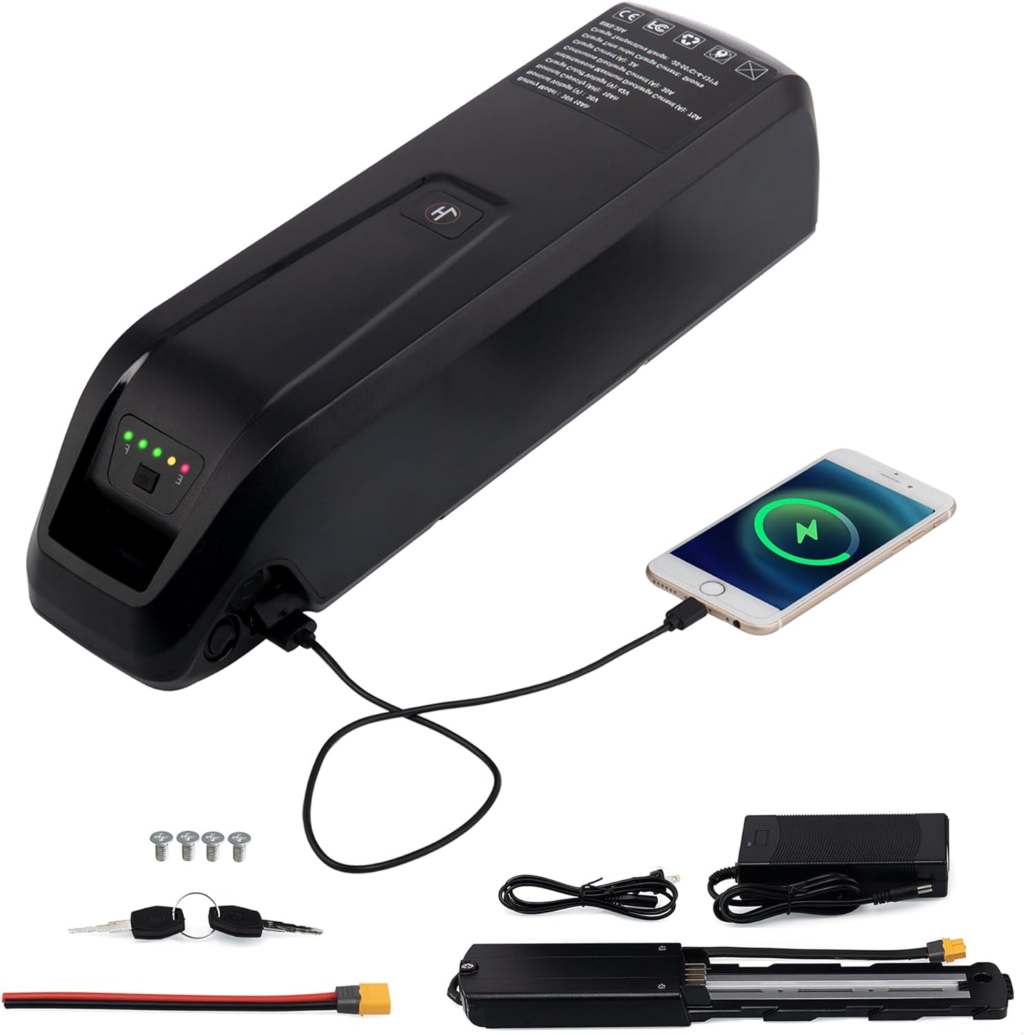 Ebike Battery 36V 10Ah Lithium Battery Ebike Battery Pack with 2A Fast Charger and BMS, USB Interface, LED Battery Indicator,Power Switch, Safety Lock forElectric Bike,Motorcycle (4-Pin)