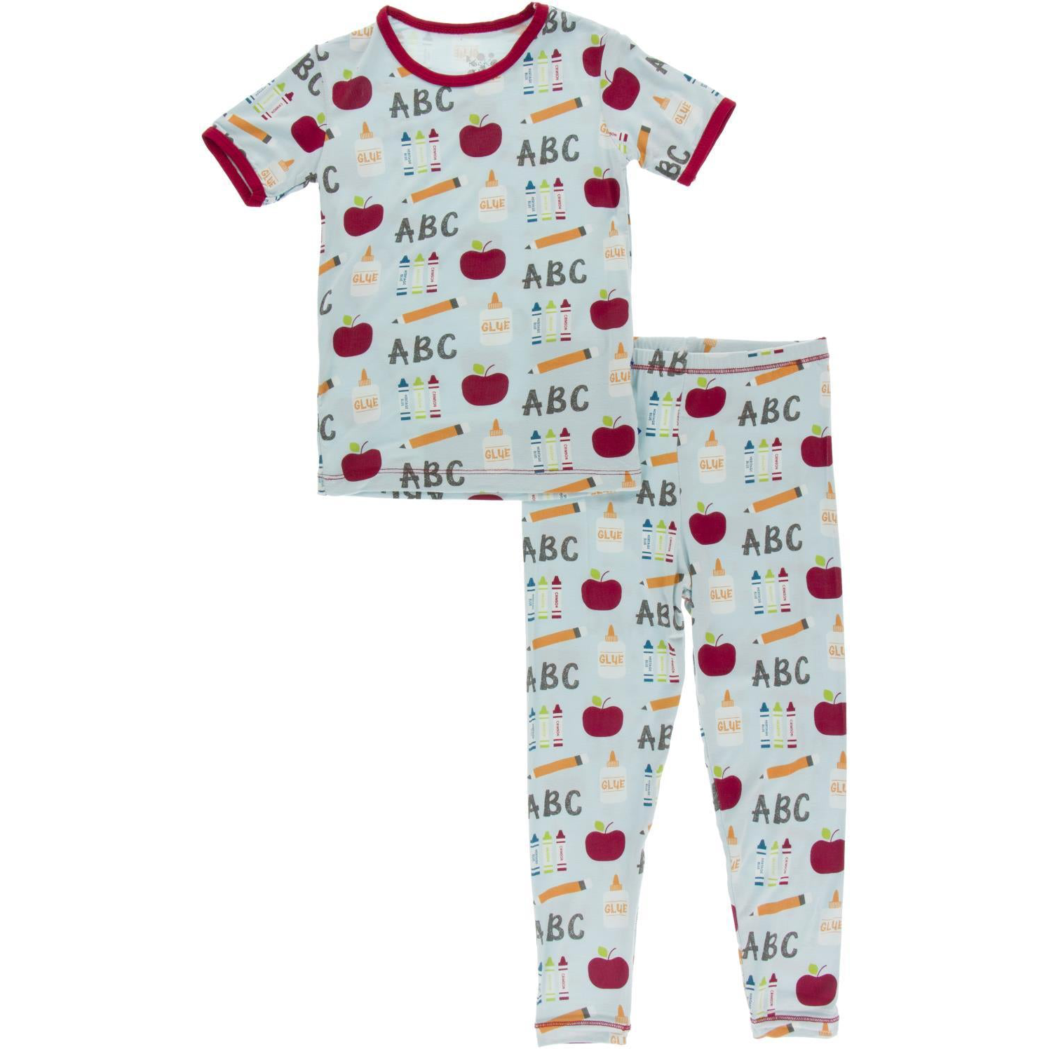 Kickee Pants First Day of School Print Short Sleeve Pajama Set Spring Sky First Day of School