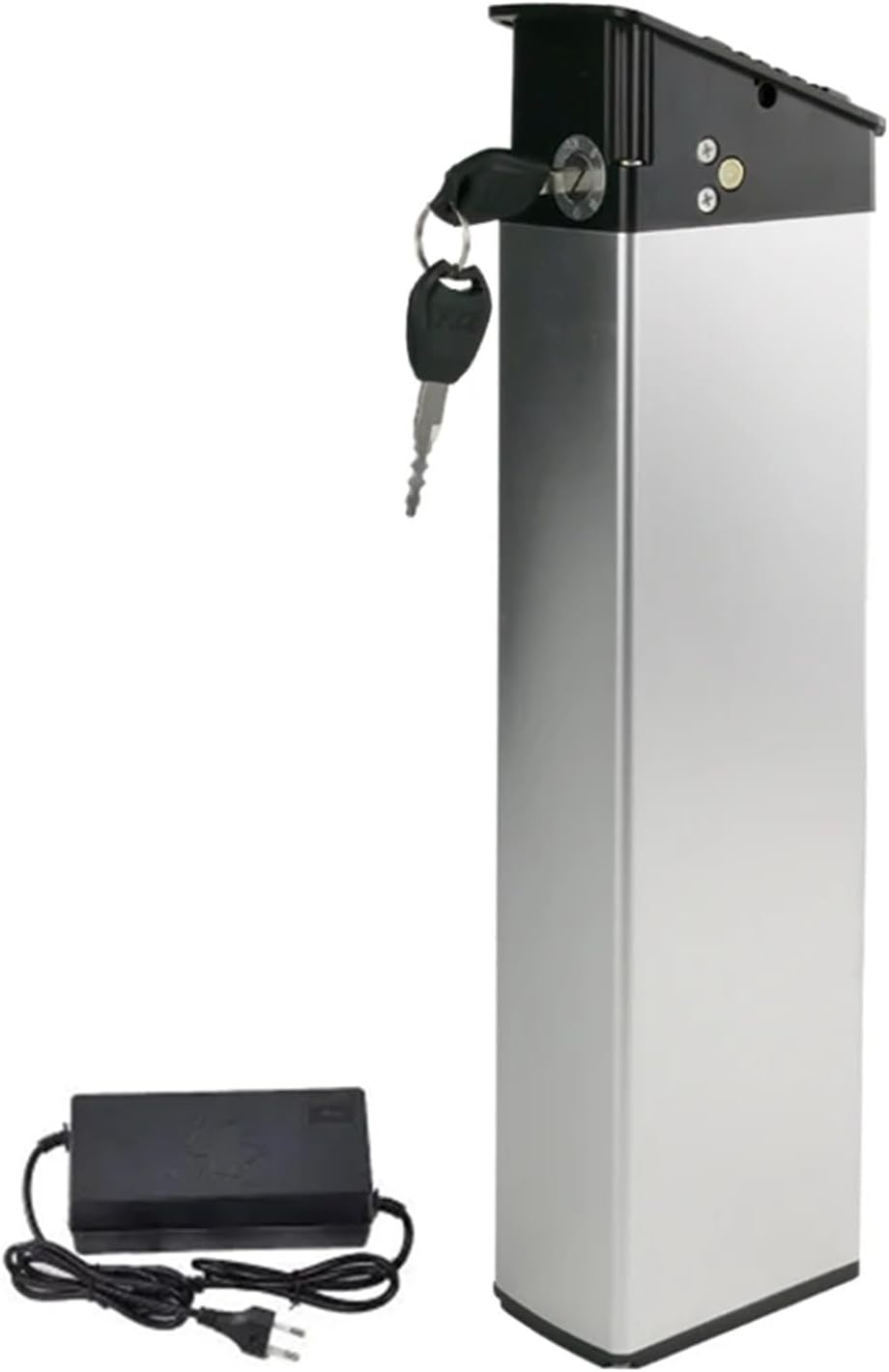 Features: Electric bike battery is designed to fit most bike frames. //Lock with keys securely locks the mount on the bike frame, preventing the battery from being stolen.// With the on/off button, save more power.