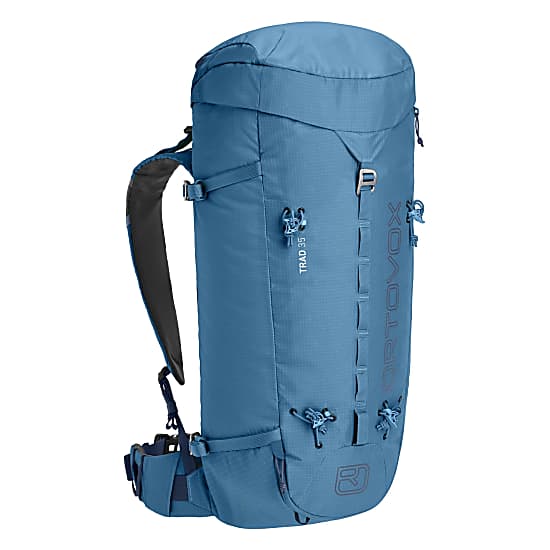 Weighing in at just 980 grams, the TRAD 35 is a lightweight among climbing backpacks. At the same time, it is equipped with many important features, including a rescue system for emergencies. Combined with the new SAR 1 rescue system, a Recco reflector integrated in the backpack ensures that injured or missing persons can be located quickly. This climbing backpack also has a lightweight and very flexible aluminum frame, which can be removed if required. And for those who want to save even more weight, the hip belt can also be removed. The main compartment can be accessed with ease using the circumferential zipper or the innovative cover opening. And of course, it would not be complete without attachment options for rope and ice axe, as well as hydration system compatibility and images of Alpine emergency signals.