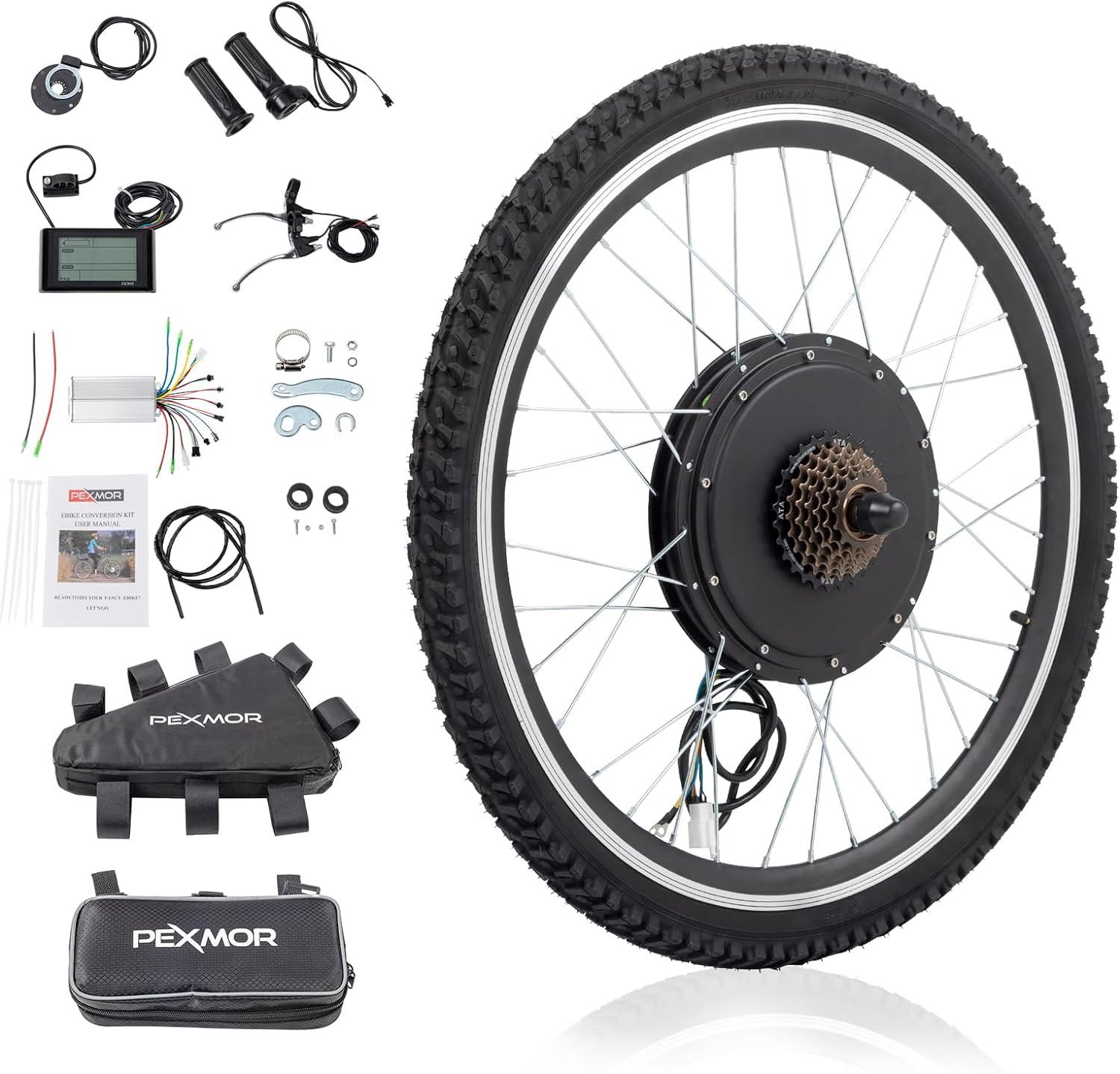 PEXMOR Electric Bike Conversion Kit, 48V 1000W /1500W 26" Front/Rear Wheel E-Bike Hub Motor Kit, Upgrade 3 Mode Controller w/PAS/LCD Display/Twist Throttle Ebike Bicycle Wheel Kit