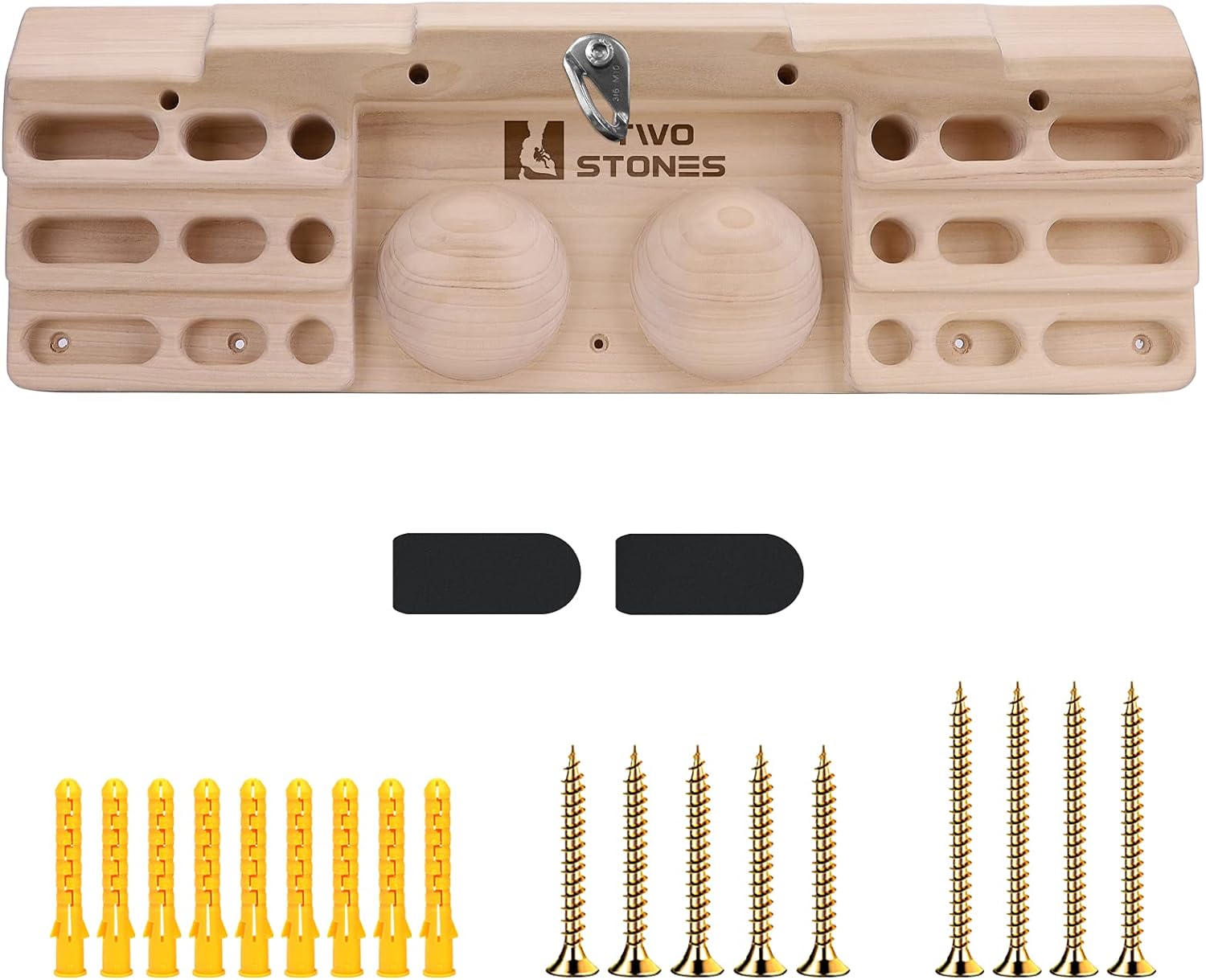 TWO STONES Wooden Hangboard Rock Climbing Pull Up Bar Designed Training for Climbing, Wooden Fingerboard Climbing Training Board for Building Core Strength and Endurance (CJ-HB2003)