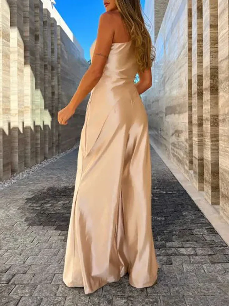 Complementing the pants is a sleeveless top featuring a unique skew collar neckline, adding a touch of contemporary flair to your outfit. The sleeveless design keeps you cool and comfortable on hot summer days, while the elegant silhouette exudes sophistication and charm.