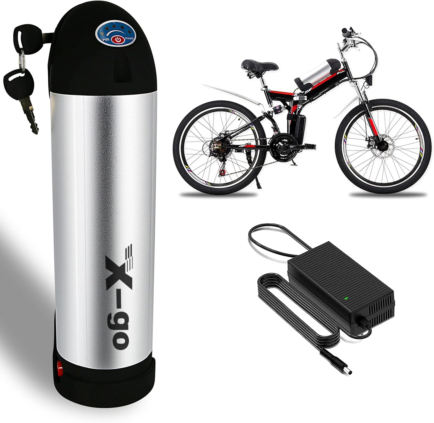 X-go 36V 10Ah Ebike Battery Lithium Li-ion, Electric Bike Battery with Charger and Holder for 200W 250W 350W Electric Bicycle Motor, for Modified Bike/Daily/Outdoor/Widely Applicable